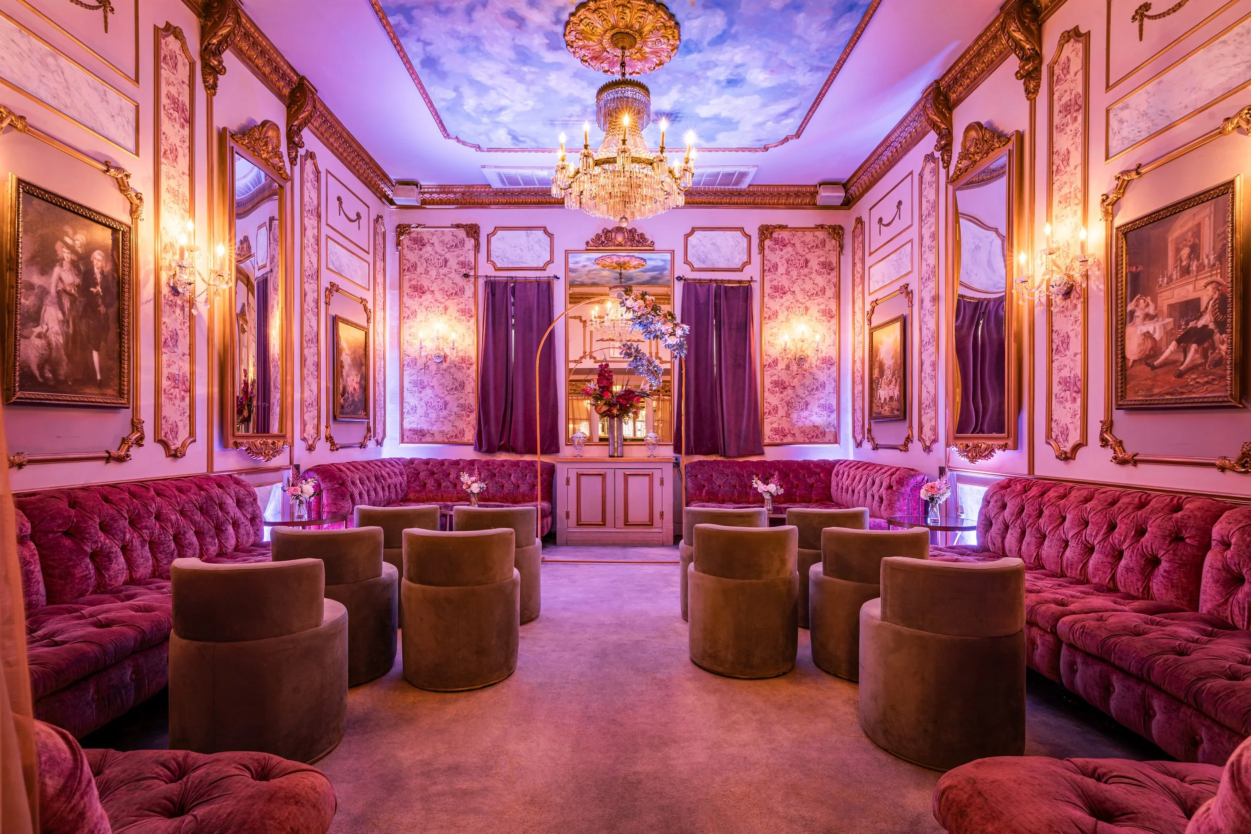 Host your private event at our whimsical cocktail parlor in Gramercy, just steps from Union Square and near the lively East Village New York bars scene. Known as one of the best bars for private events in NYC, our intimate space is perfect for weddings, cocktail receptions, and milestone celebrations. Inspired by Midnight in Paris, guests are invited to time-travel through eras—beginning in a John F. Kennedy–inspired salon and ending in a Marie Antoinette–themed room. Designed by Delphine Mauroit, this hidden private event bar in NYC feels like a true speakeasy, ideal for those looking for bars with private rooms or affordable wedding venues with timeless charm.
